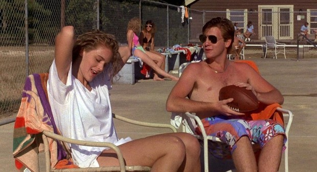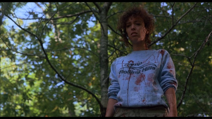This movie casts Pamela Springsteen as Angela, Bruce Springsteen’s sister. She adds a comedic edge to Angela that was missing in the original and this movie as a whole is more of a horror comedy. The first film was a serious slasher film, while this one realizes what it is a cheap and fun flick. I really enjoy Pamela as Angela, she’s fun, quirky and cute but not a bombshell. She does a great job at being awkward and weird. The rest of the cast is rather forgettable aside from a few characters: the head counselor TC played by Brian Patrick Clarke, Molly the final girl played by Renee Estevez, and the slutty bad girl Ally played by Valerie Hartman. Ally is a great character, she walks around topless a lot, trying to hook up with the boys and asking a guy, post coital if he has AIDS lol. Something about her cracks me up and I’m sad to hear that she left acting because every role offered to her involved nudity, which she didn’t want to do.